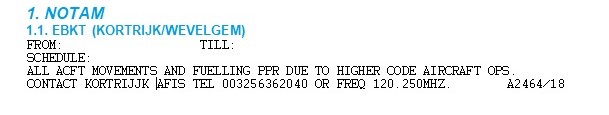 Important: The personal flight preparation of any pilot intending to operate into Kortrijk Airport shall however go beyond the information contained in these pages, and shall be based on actual and updated official documents contained in the AIP.