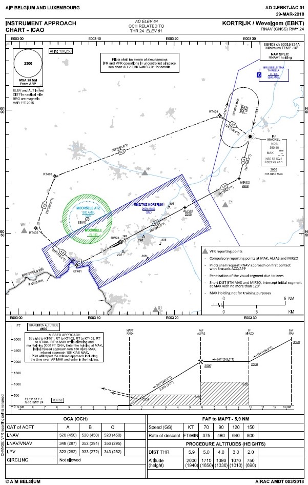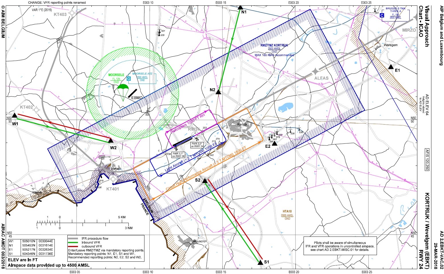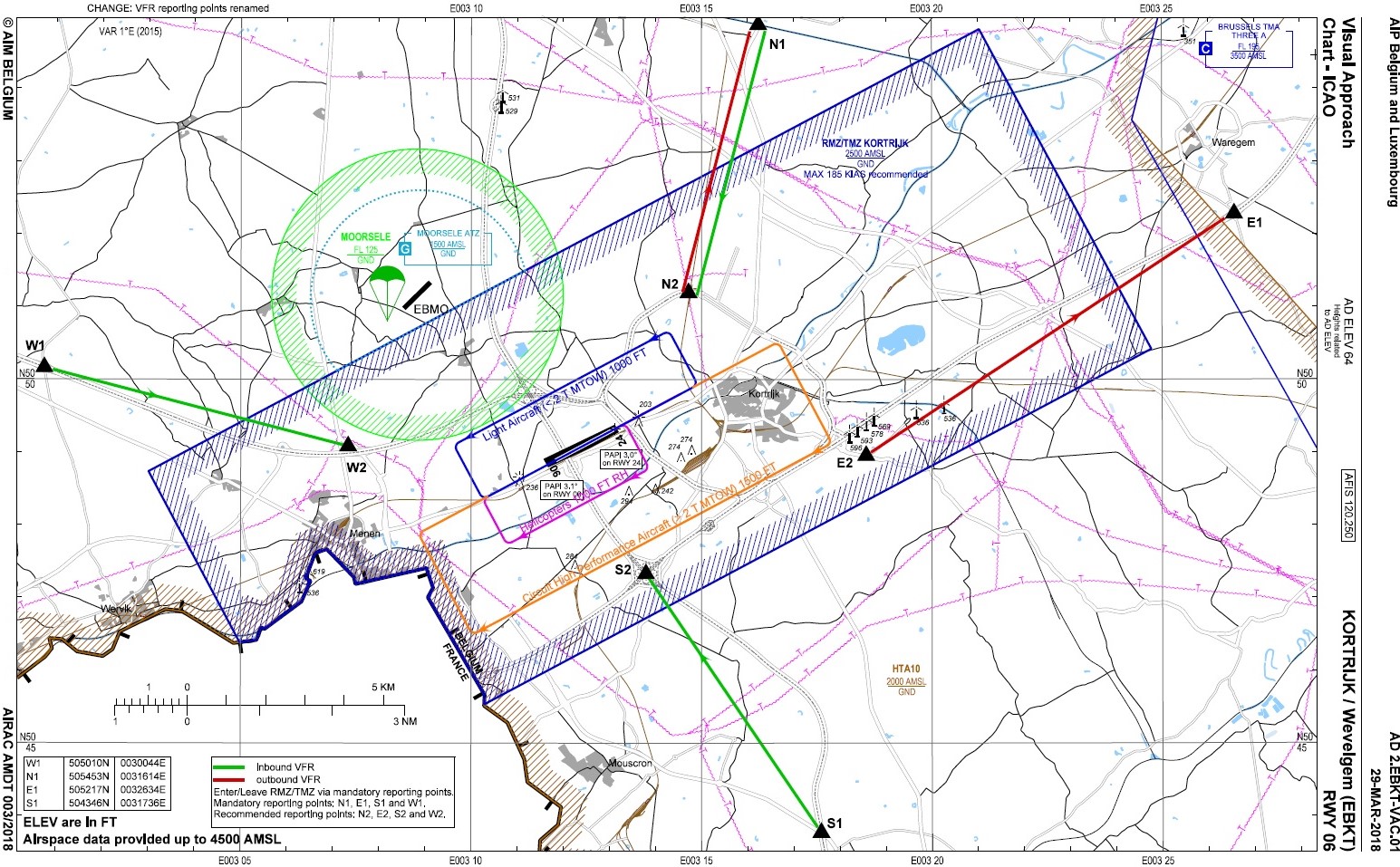 - Two way radio communication with Kortrijk Radio (120.250) is compulsory.